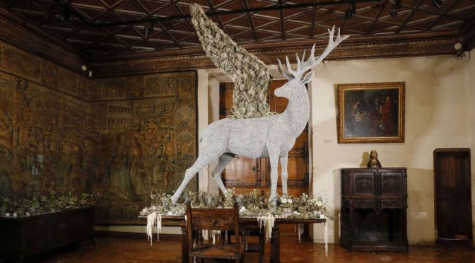 Château de Chenonceau. Noël à Chenonceau : les animaux fantastiques. Pour rendre hommage à la Renaissance dont nous fêtons les « 500 ans », c’est un bestiaire extraordinaire qui est à l’honneur à Chenonceau. Les « Grandes Découvertes », période qui commence au début du XVe siècle, ont vu l’arrivée en Europe de plantes et végétaux alors inconnus. Asie, Afrique, Amériques, livrent leurs trésors : des produits exotiques mais aussi des animaux étranges, que l’on retrouve parfois au hasard des remarquables tapisseries qui s’exposent sur les murs du château. Route des épices, Route de la soie, Route des Indes… Le rêve n’est pas loin, et avec lui les animaux fantastiques de la mythologie : l’existence de créatures légendaires doit beaucoup aux descriptions d’animaux issues de récits d’explorateurs. Oui, la magie de Noël sera bel et bien présente à Chenonceau, portée par l’atelier floral du château et son scénographe, Meilleur Ouvrier de France.