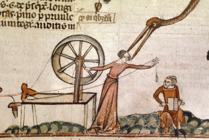 Les sous-vêtements en lin – non colorés et lavés souvent (et donc susceptibles de s’user) – constituaient une source idéale de chiffons pour la fabrication du papier. Et la nouvelle disponibilité du lin à bas prix, grâce au rouet, a coïncidé exactement avec l’augmentation considérable de la demande de papier au 15e siècle.