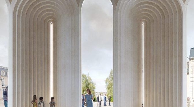Le studio japonais Kengo Kuma and Associates a dévoilé les plans d’une galerie d’entrée contemporaine destinée à protéger la porte sculpturale de la cathédrale d’Angers, en France.