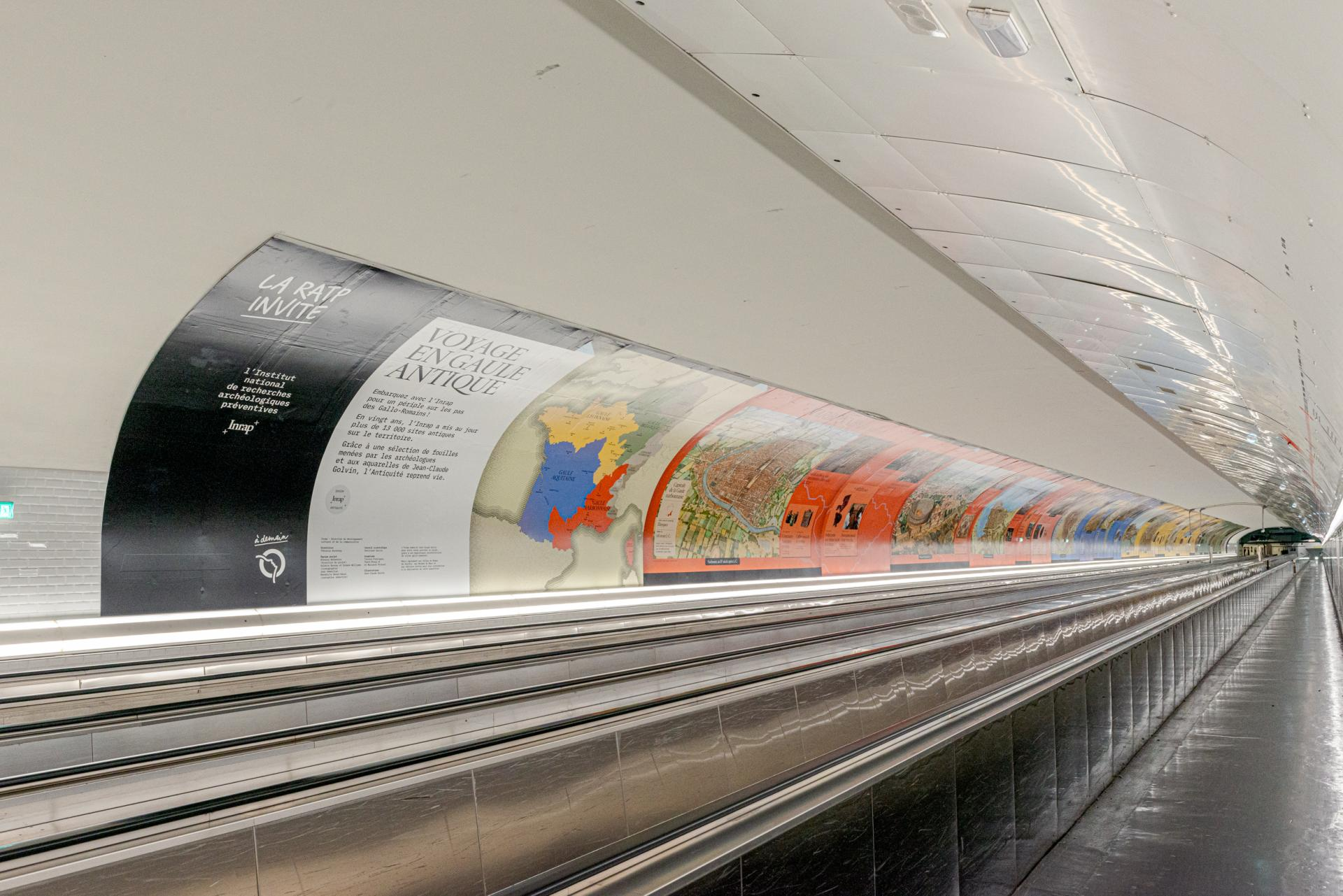 La fresque ainsi déployée emmène les usagers de la RATP dans un voyage hors du commun à travers la Gaule antique, son extension géographique, ses expressions artistiques et architecturales, la diffusion de son langage mais aussi ses pratiques cultuelles et funéraires.