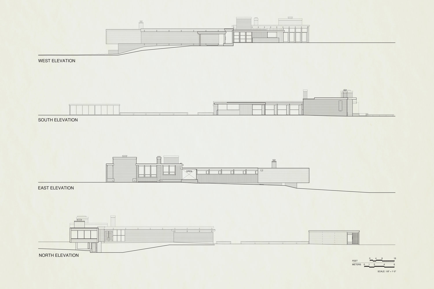 Ce qui frappera la plupart des visiteurs de la maison Schweikher, qui fonctionne aujourd’hui comme un musée, n’a pas tant à voir avec ses températures confortables qu’avec son aspect et son toucher. Les principaux matériaux de la maison : la brique, la plus visible, mais aussi le séquoia, aujourd’hui altéré par les intempéries en « une gamme de magnifiques bruns et gris sombres ». Schweikher a utilisé ces matériaux et d’autres pour construire ce que Hicks appelle un « système solaire passif à gain direct », dont les ouvertures et les surplombs sont « positionnés de manière à laisser entrer le soleil d’hiver, tout en bloquant le soleil d’été », qui frappe sous un angle légèrement différent. « Des ouvertures surélevées et ouvrantes de l’autre côté du bâtiment permettent à l’air chaud de s’élever et à l’air extérieur d’être aspiré », en plus d’autres caractéristiques qui maintiennent un climat intérieur tempéré sans l’utilisation d’appareils électriques ou même mécaniques. Le fait d’avoir conçu cette résidence pour lui-même et sa femme en 1937 l’a placé à l’avant-garde de ce qui sera plus tard reconnu comme l’interprétation américaine du modernisme du milieu du siècle, ainsi que de ce que l’on appelle aujourd’hui la technologie de construction des « maisons solaires ». On peut dire que les techniques de Schweikher sont encore plus précieuses aujourd’hui : le climat peut changer, après tout, mais les angles saisonniers du soleil restent les mêmes.