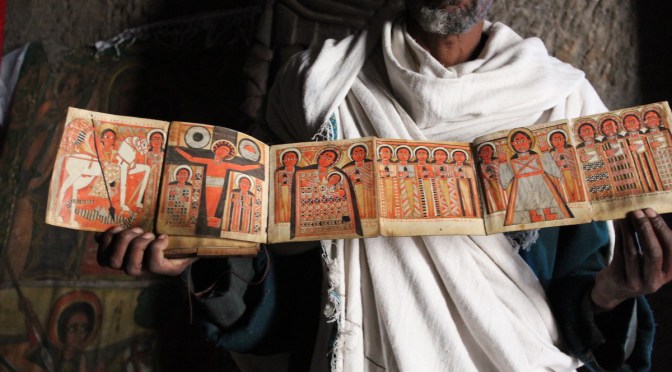 Photographie : manuscrit tiré des collections de l’Église de Narga Sélassié, à Bahar Dar, en Éthiopie (A.Davey, CC BY 2.0)