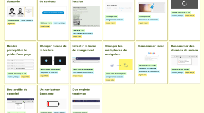 Avec ce cahier d’idées, nous souhaitons rendre publique des idées et des outils (déjà existants ou à inventer) pour permettre à chacun de reprendre le contrôle sur le web et en faire un espace plus sobre: https://praticable.fr/navecolo/https://praticable.fr/navecolo/