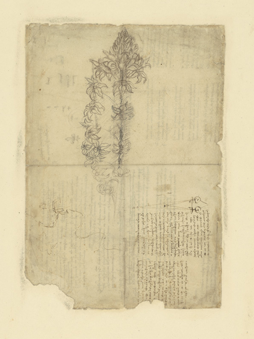 Deux feuillets originaux de Léonard, le dessin d’un alambic et celui d’un asphodèle, conservés à la Pinacothèque Ambrosienne de Milan, sont exceptionnellement présentés pour l’occasion.