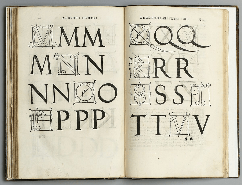 Albrecht Dürer a exploré la géométrie appliquée à la conception des lettres dans son livre Sur la formation correcte des lettres. Le texte, est disponible sur le site du Projet Gutenberg en anglais.