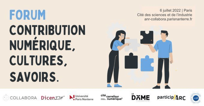 En juillet 2022, dans le cadre du projet ANR COLLABORA, avait lieu le forum « Contribution numérique, cultures, savoirs », réunissant citoyens et institutions culturelles dans un double objectif : d’une part marquer la conclusion d’un projet de recherche qui, pendant trois ans, s’était penché sur les diverses formes de contribution numérique dans les domaines culturels et du savoir ; de l’autre, inaugurer un nouveau mouvement de dialogue plaçant les professionnels au centre de la réflexion autour de la contribution numérique.