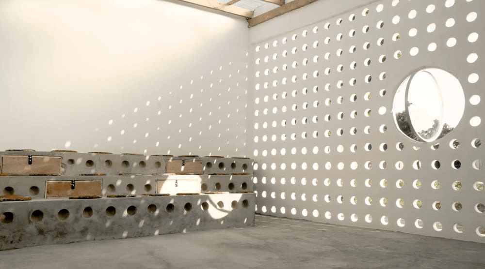 Cette petite structure, qui sert à la fois à une école locale et à une communauté plus large, a été conçue et construite en un peu plus d’un mois. Elle allie les traditions architecturales et les méthodes de construction locales à l’esthétique plus moderne du studio basé au Koweït. Grâce à l’utilisation de sièges en gradins, de type stade, pour la zone de lecture, le bâtiment peut également servir d’espace pour les réunions et les spectacles de la communauté.