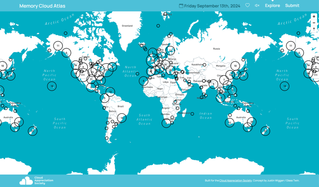 Le vendredi 13 septembre 2024, des milliers d’amateurs de nuages du monde entier lèveront les yeux et soumettront des photos en ligne pour la troisième édition annuelle du #cloudappreciationday à l’Atlas de la mémoire des nuages: https://www.memorycloudatlas.org/