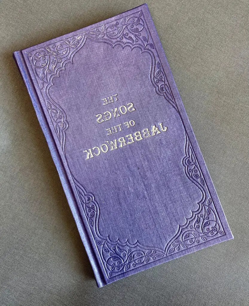 « Ces livres sont des objets liminaux », a déclaré Byers. « Ils vous placent sur le seuil juste avant que vous ne descendiez dans le terrier du lapin. (Pour faire bonne mesure, il y a une version du livre qu’Alice a lu dans « À travers le miroir et ce qu’Alice y a trouvé ». Sa couverture est teintée en violet, son titre, donné par Byers, est « The Songs of the Jabberwock » et il est imprimé en miroir).