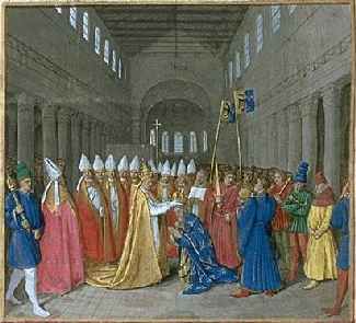 C’est d’abord le roi de France Charles V le sage (1338-1380) lui-même qui élève Charlemagne à la gloire des autels de son royaume.