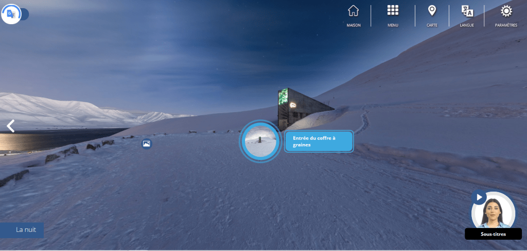 A l’occasion de son 15e anniversaire, le Svalbard Global Seed Vault, co-géré par le gouvernement norvégien, la société NordGen (banque génétique des pays nordiques) et le Crop Trust, propose une visite virtuelle gratuite et libre d’accès. L’interface donne l’opportunité de circuler dans les longs couloirs de la banque, et jusqu’au sein des trois salles de stockage prévues pour abriter quelque 3.000 boîtes de graines chacune – soit 4,5 millions de variétés végétales au total – avec la possibilité d’accéder à des explications, textuelles ou vocales, sur des points précis.