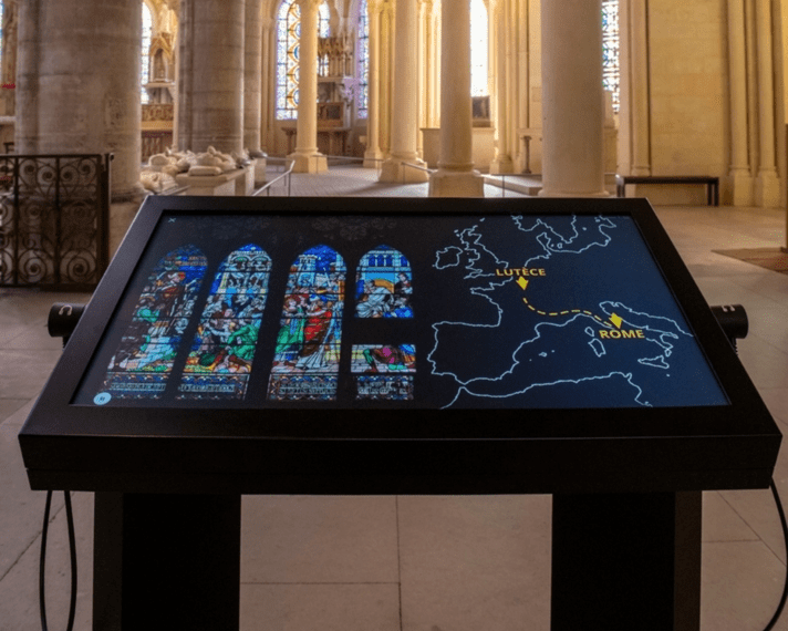Dans le transept sud, deux tables multimédia sont installées. La première, à deux entrées, oriente les visiteurs grâce à un plan de la nécropole et des tombeaux, une généalogie des rois de France ainsi qu’une foire aux questions pour répondre aux principales interrogations des visiteurs. La seconde propose deux films d’animations, un sur la nécropole, et un autre, destiné au jeune public, qui explique ce qu’est un gisant.