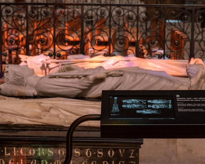 Une quinzaine de cartels numériques abordant la première thématique sont disposés dans toute la nécropole royale, au plus près des gisants. Installés sur les mises à distance, pour en savoir plus sur l’ensemble funéraire que l’on a sous les yeux, ces nouveaux cartels offrent aux visiteurs une approche à la fois stylistique et historique du tombeau et des ensembles, en proposant un focus sur chaque défunt représenté, avec des informations et des photographies de détails.