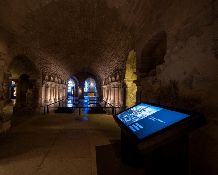 Dans la crypte, deux dispositifs sont également ajoutés, et se concentrent à la fois sur la crypte archéologique et le caveau des Bourbons, et sur la basilique pendant la Révolution française. Dans le chevet, un dernier film animant les vitraux des parties hautes retrace la légende de Saint Denis.
