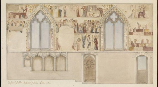 L’église St Mary à Chalgrove, dans le sud de l’Oxfordshire, possède un ensemble unique de peintures murales du XIVe siècle qui décorent le chœur en une série de 44 images.