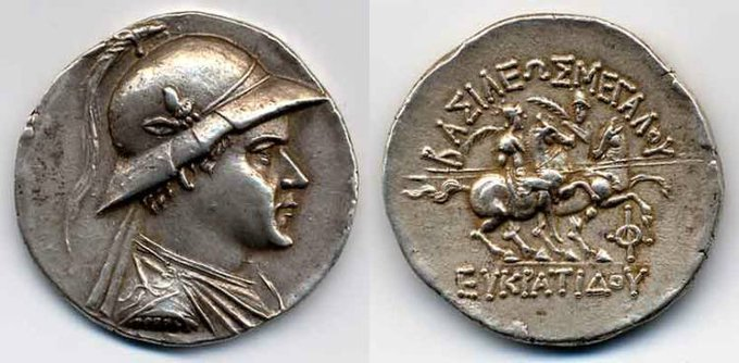 L’Eukratideion figure sur les billets afghans actuels comme logo-type de la banque centrale afghane, 2200 ans après le règne d’Eukratides.