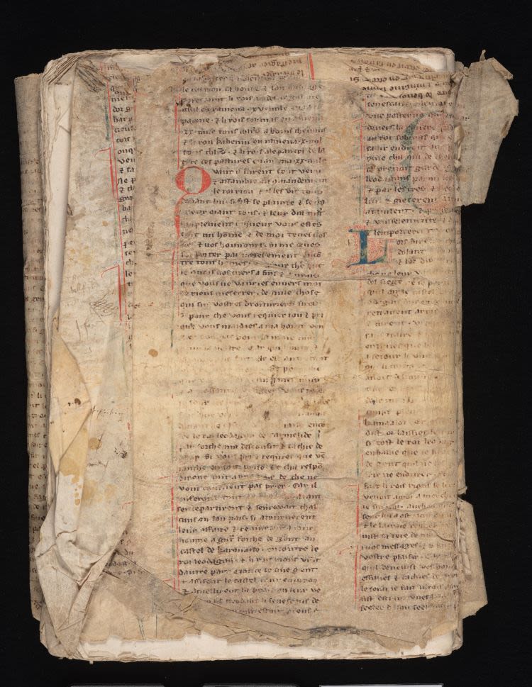 « On pensait initialement qu’il s’agissait d’un récit du XIVe siècle sur Sir Gawain, mais un examen plus approfondi a révélé qu’il s’agissait en fait d’une partie de la suite de la Vulgate Merlin en ancien français, un texte arthurien différent et extrêmement important. »